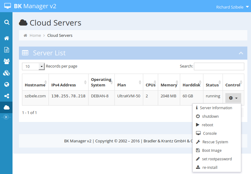 I personally use the KVM-50 plan in the server location Düsseldorf, Germany, as it has 2 CPU cores and I also need more hard drive space and bandwidth.